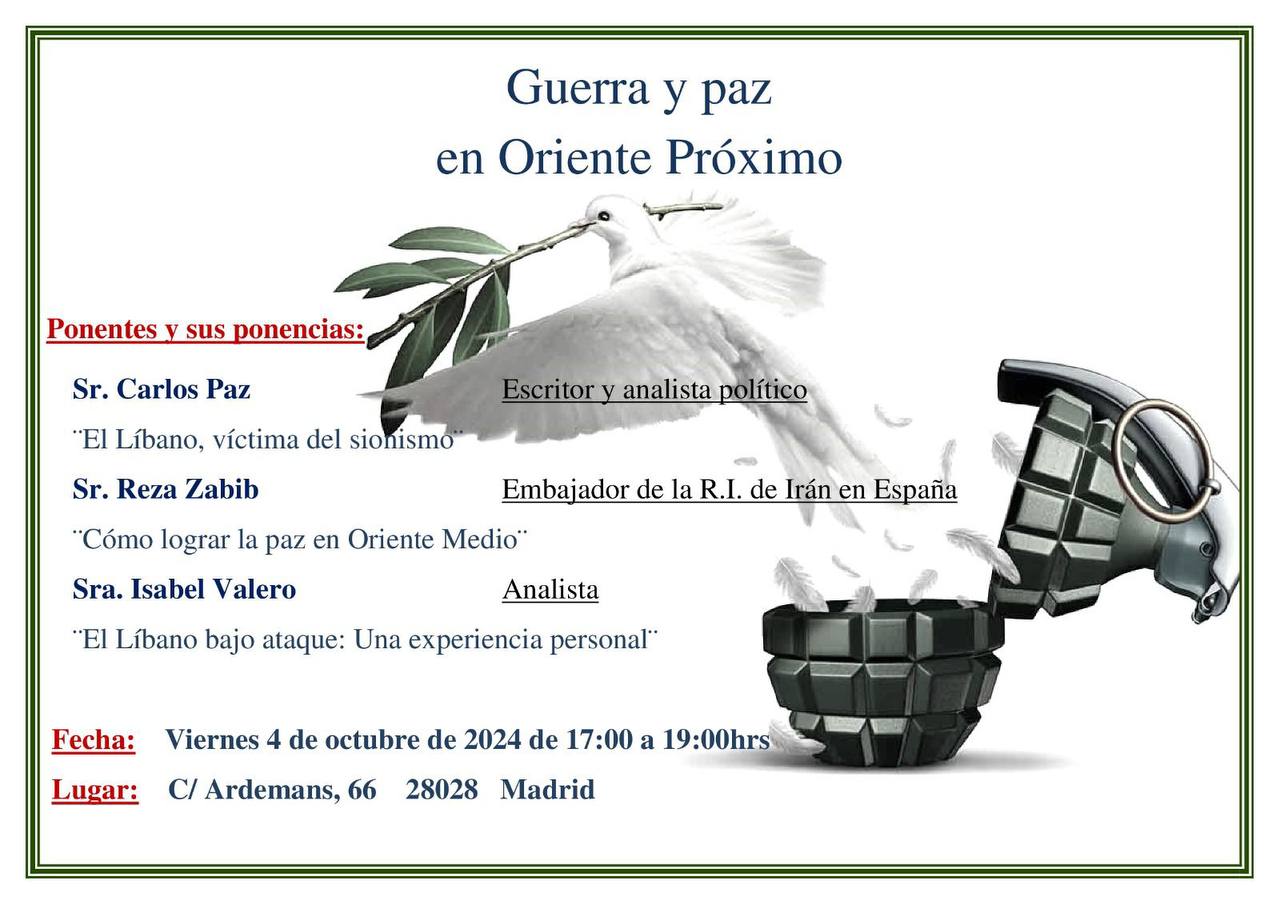 El viernes pasado, 05 de octube de 2024, el embajador de Irán en España, Dr. Reza Zabib, participó en el evento «Guerra y paz en Oriente Próximo», donde habló sobre el genocidio perpetrado por el régimen sionista en Gaza y Líbano. Durante su intervención, expuso las causas, las dimensiones y las perspectivas de este genocidio.